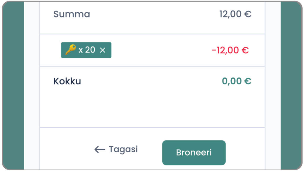 Kui tasumisele kuuluv summa on 0 €, tähendab see, et ligipääsuvõti on edukalt rakendatud.